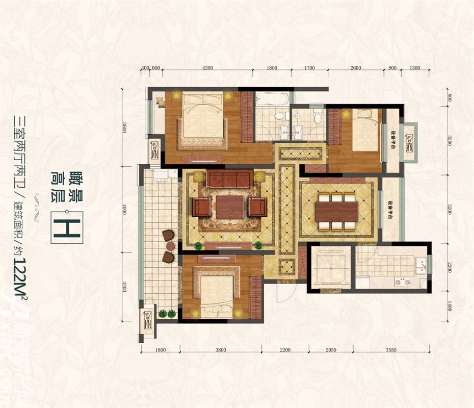 戶型結(jié)構(gòu):三室兩廳一廚兩衛(wèi)