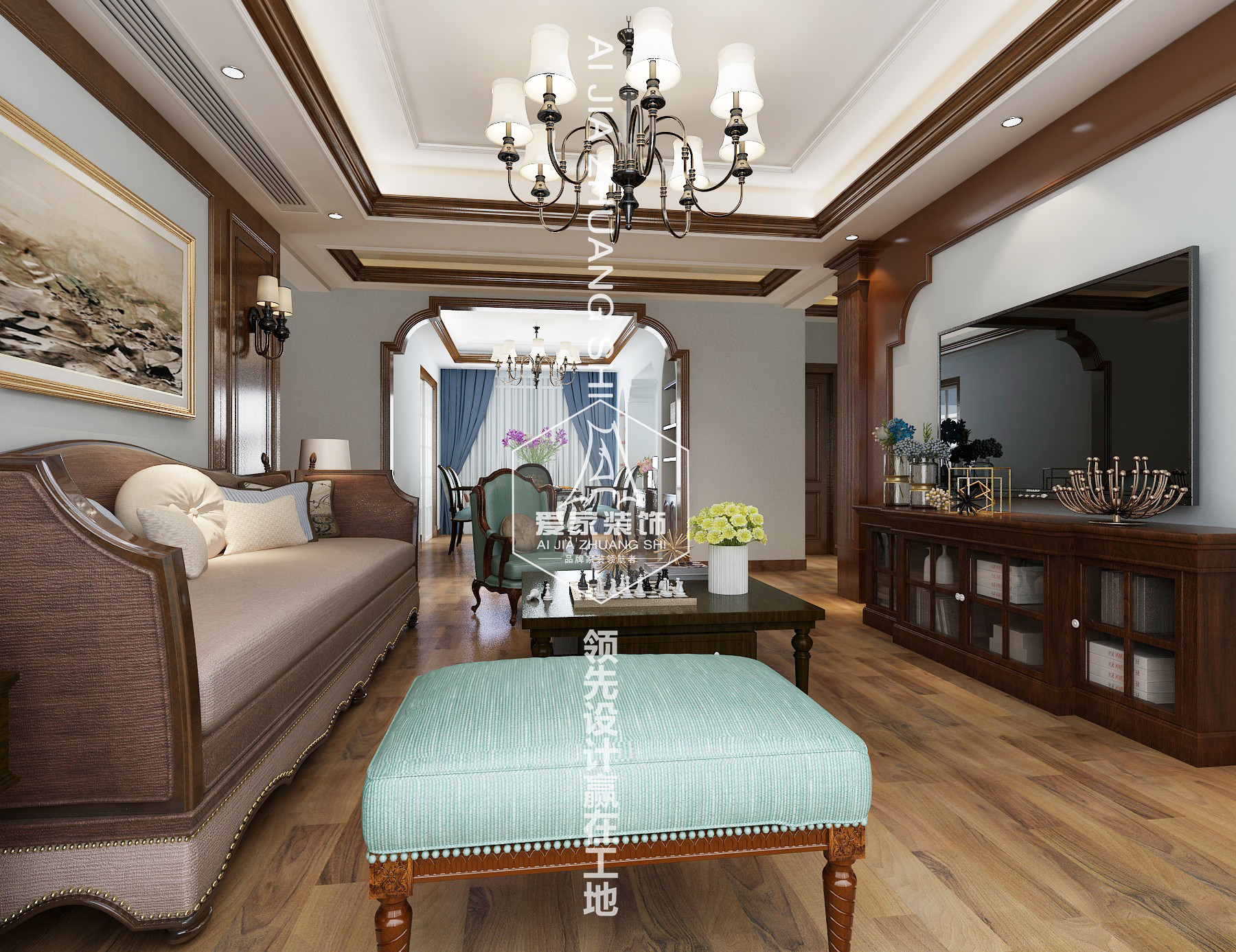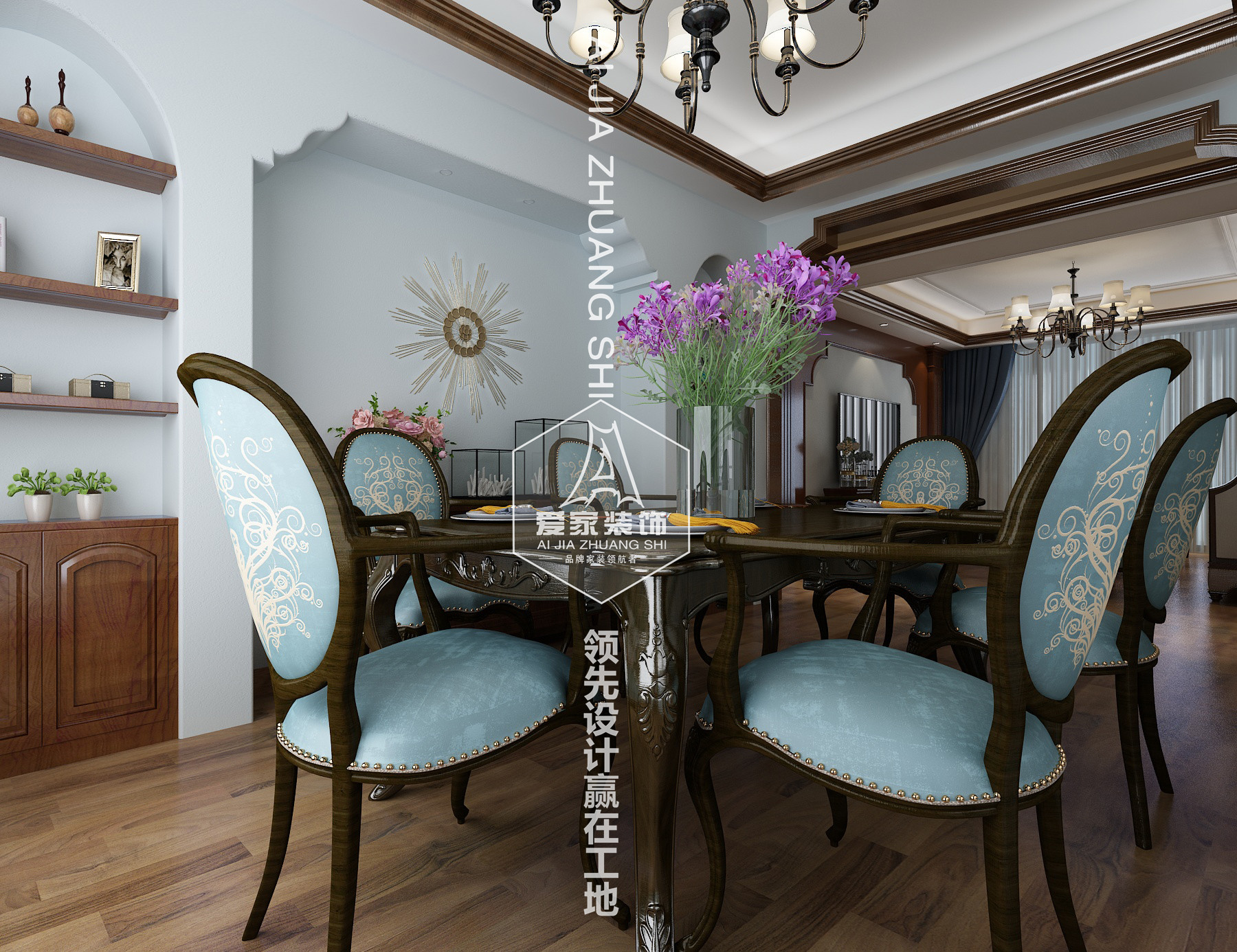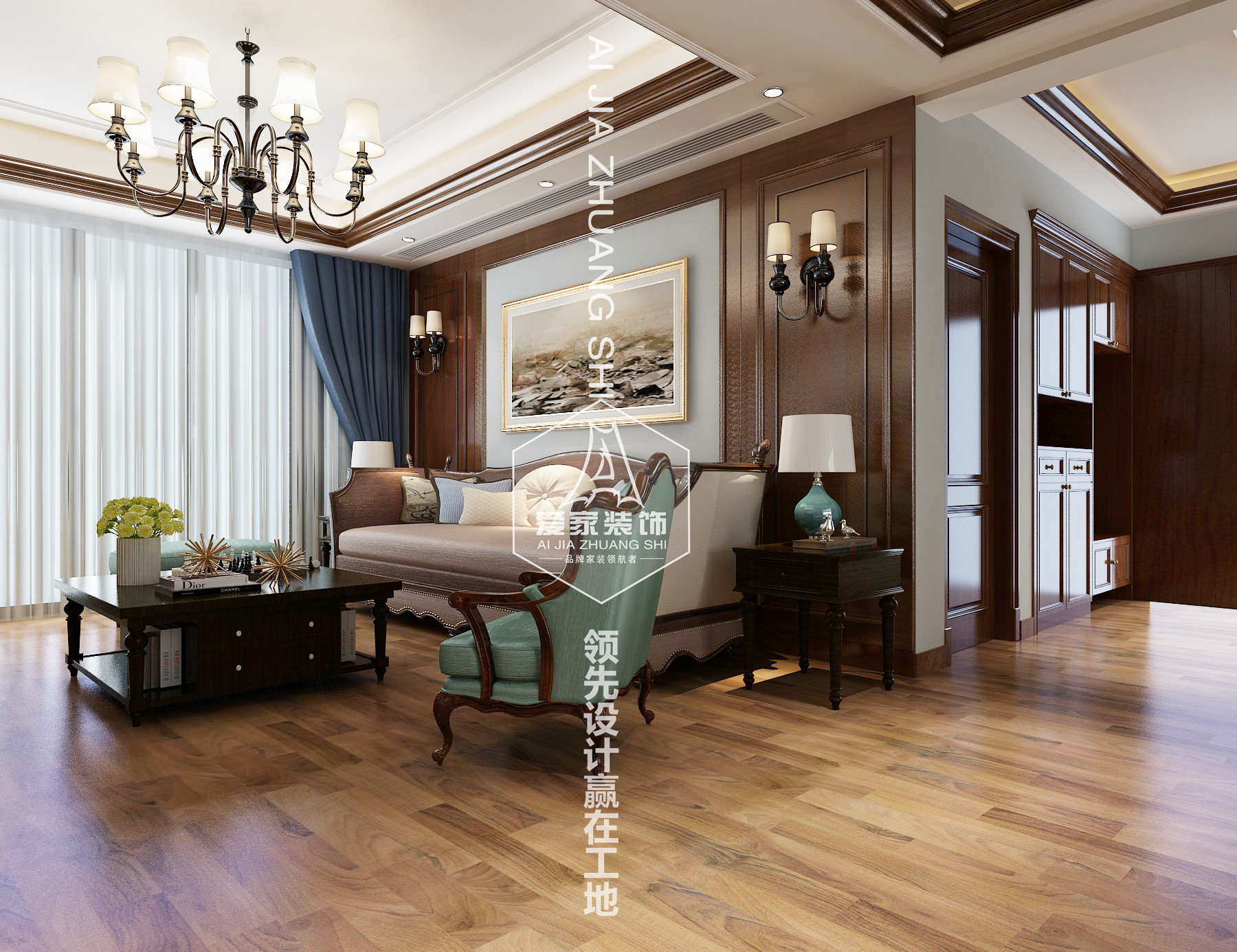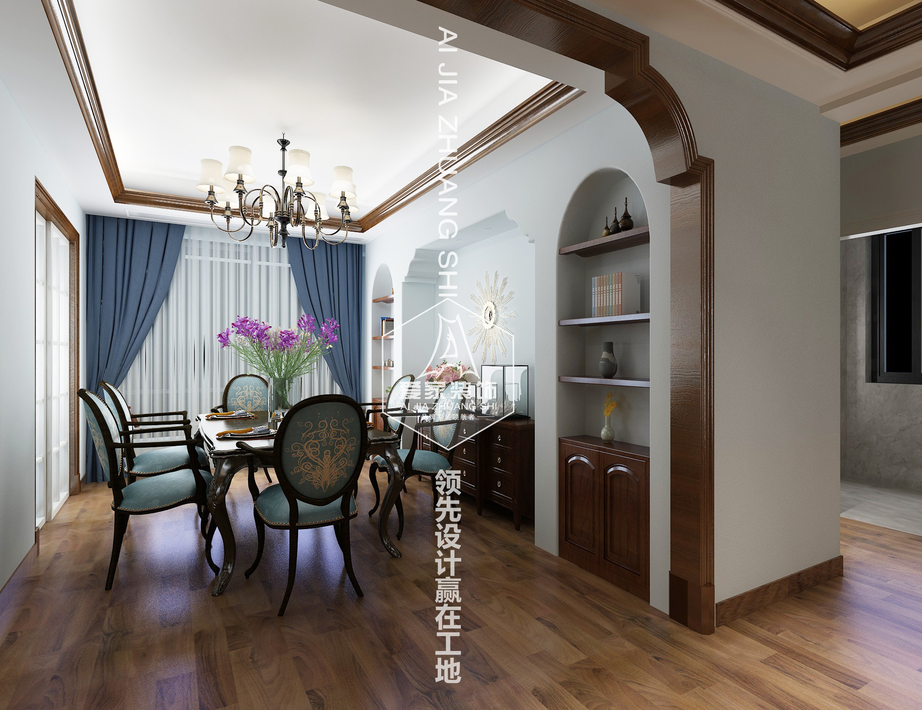 設(shè)計理念:原戶型結(jié)構(gòu)中餐客廳屬于連通關(guān)系,且面積較大,為了使空間更具層次性,我們利用拱券結(jié)合木柱形式進行分隔,衛(wèi)生間較小,且兩個衛(wèi)生間臨近功能重合,對其合并后,使原有的空間更為開闊舒適。整體空間中,使用了大量的木質(zhì)墻板。為了使整個空間更為輕松而不沉悶,我們在墻板空面結(jié)合了較為柔和的藍色,同時,通過對燈光的布置,增加了室內(nèi)的采光以及對氛圍的營造??蛷d的面積比較大,配合整體效果,墻面設(shè)計墻板來增加整體的圍合感,整體深淺對比,通過家具及軟裝的搭配使空間更加飽滿也更有生活的味道