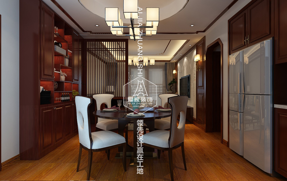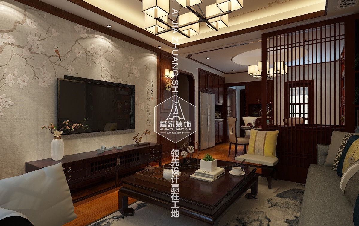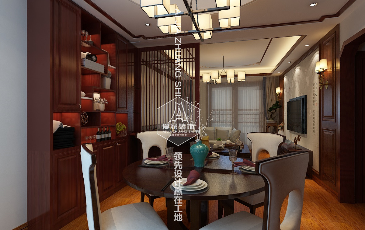 統(tǒng)的中式裝飾映襯對照,搭配實木材質,清新不失端莊之韻,還原簡樸寧靜利落之美。暖意融融的燈光掩映清麗的枝葉,