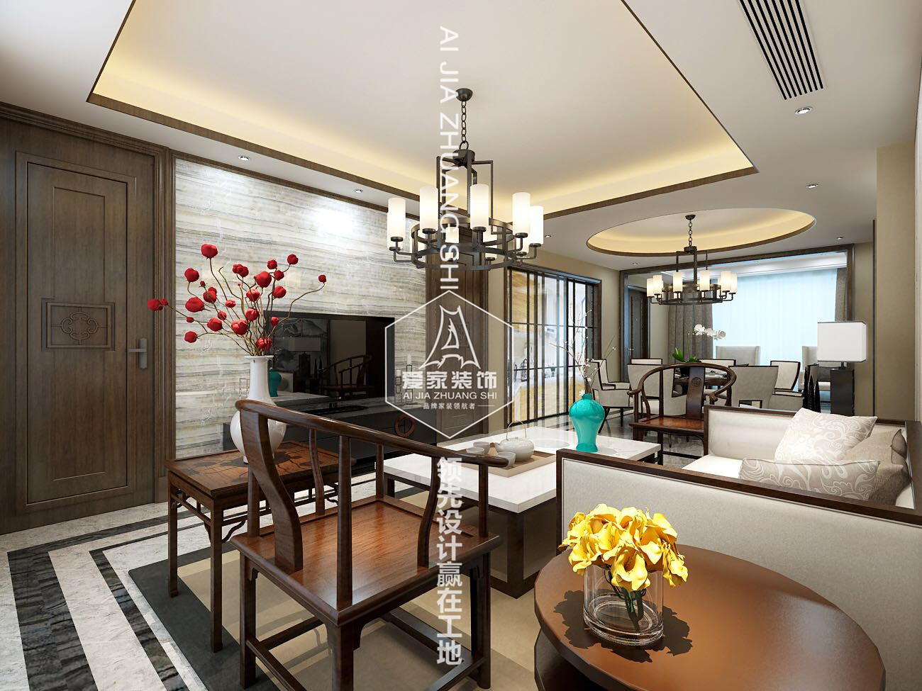該戶型是三室兩廳兩衛(wèi)的大戶,南北各一個陽臺。該戶常住人口較多,夫妻倆帶三個孩子,因此功能劃分方面要求比較高。女主人經(jīng)常在家做飯,因此把廚房擴大,把北面陽臺一起利用了進來。由于人口較多,還是保留了三個起居室和兩個衛(wèi)生間。風格方面主人家偏愛新中式,所以整體采用的新中式風格里比較常見的胡桃木色,吊頂位置都輔以實木線條作為凸顯亮點,也更能突出新中式風格的特質。整體色調(diào)方面比較簡單大方,沒有過多的花色,體現(xiàn)出一派山水文人的氣息。