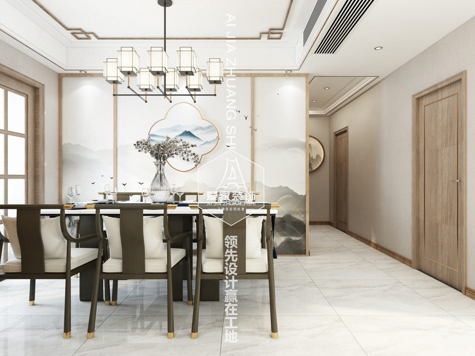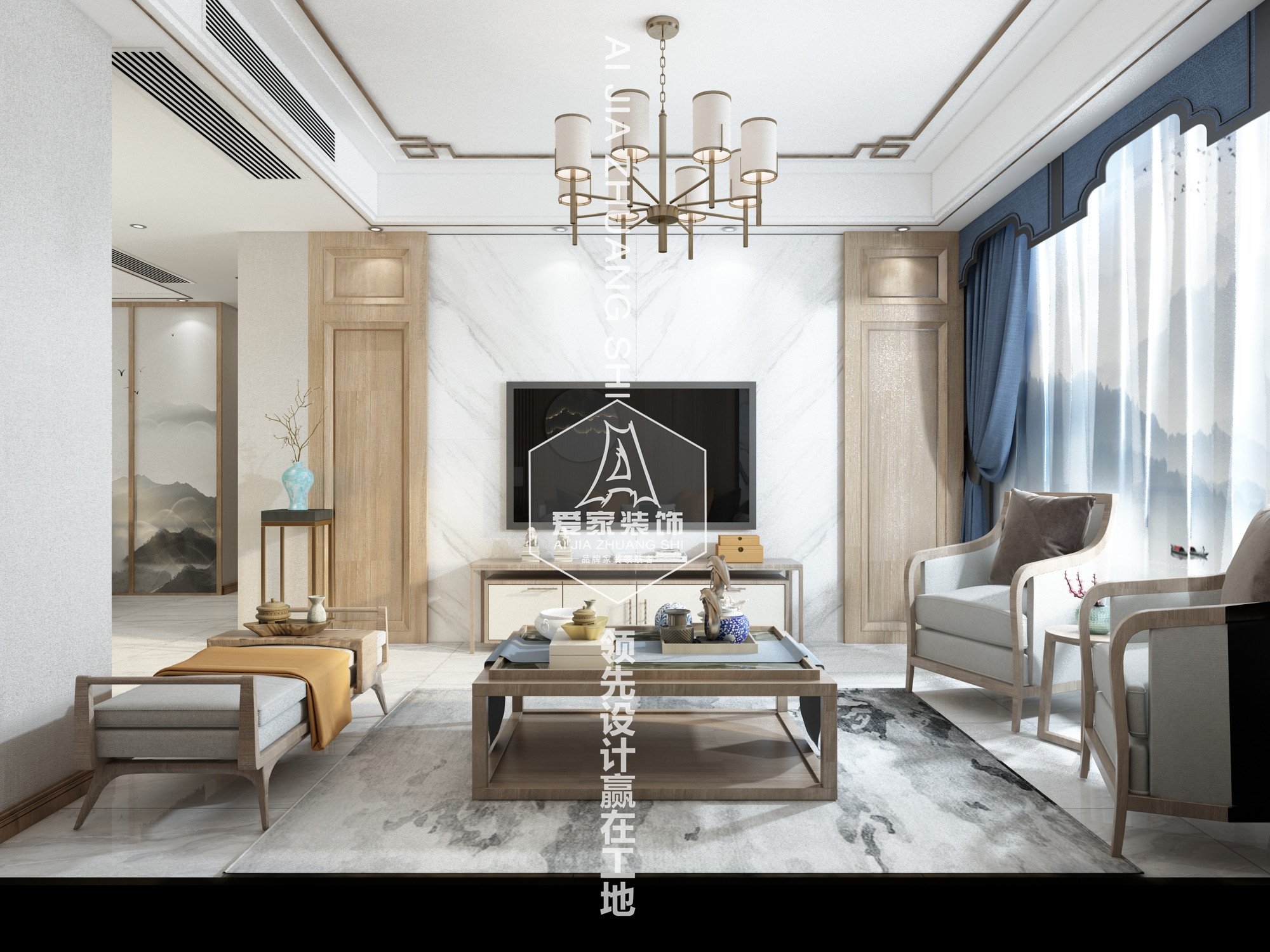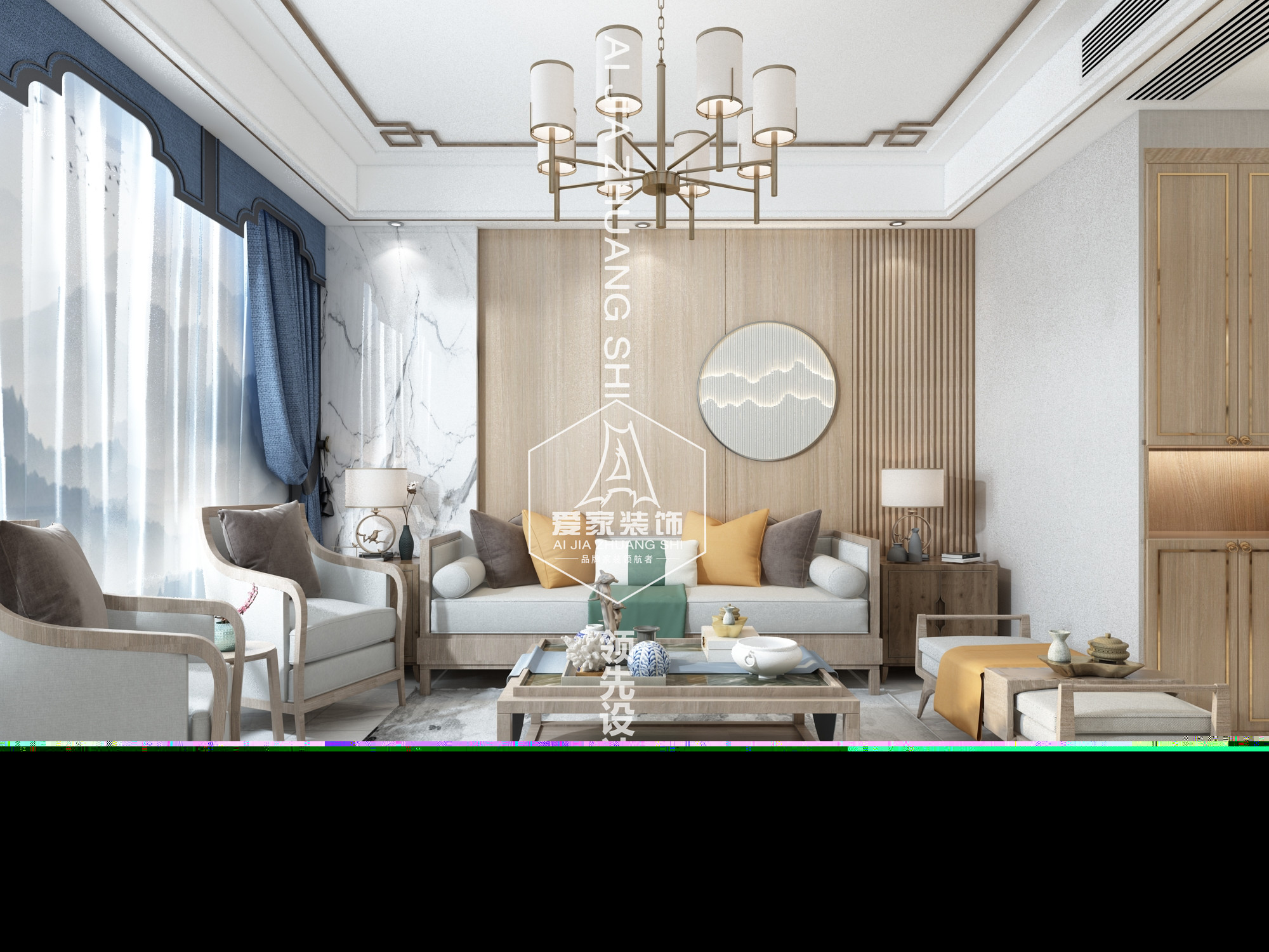 新中式風(fēng)格,也被稱作現(xiàn)代中式風(fēng)格。新中式風(fēng)格設(shè)計(jì),既是中國傳統(tǒng)風(fēng)格文化與現(xiàn)代時(shí)尚元素的融合與碰撞,又是在中國當(dāng)代文化理解基礎(chǔ)上的現(xiàn)代設(shè)計(jì)。一談到“新中式設(shè)計(jì)”、“現(xiàn)代中式風(fēng)格設(shè)計(jì)”,大家的腦海中一下子就聯(lián)想到中國風(fēng)的傳統(tǒng)家具、古典的裝飾以及魚、鳥、花、蟲的裝飾。但其實(shí)不然,新中式設(shè)計(jì)更是在原來傳統(tǒng)中式的風(fēng)格上添加了一些時(shí)尚的現(xiàn)代元素,是現(xiàn)代風(fēng)格與中式風(fēng)格的完美融合。本案中使用了淺胡桃作為主色調(diào)在配些許中式水墨色彩搭配,整體突出現(xiàn)代,年輕、自然、素雅等特點(diǎn)。